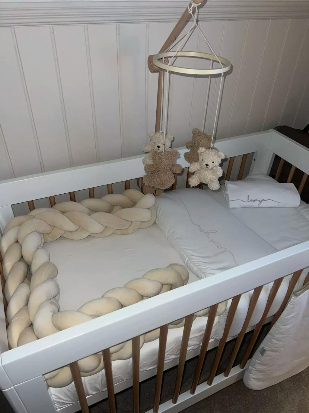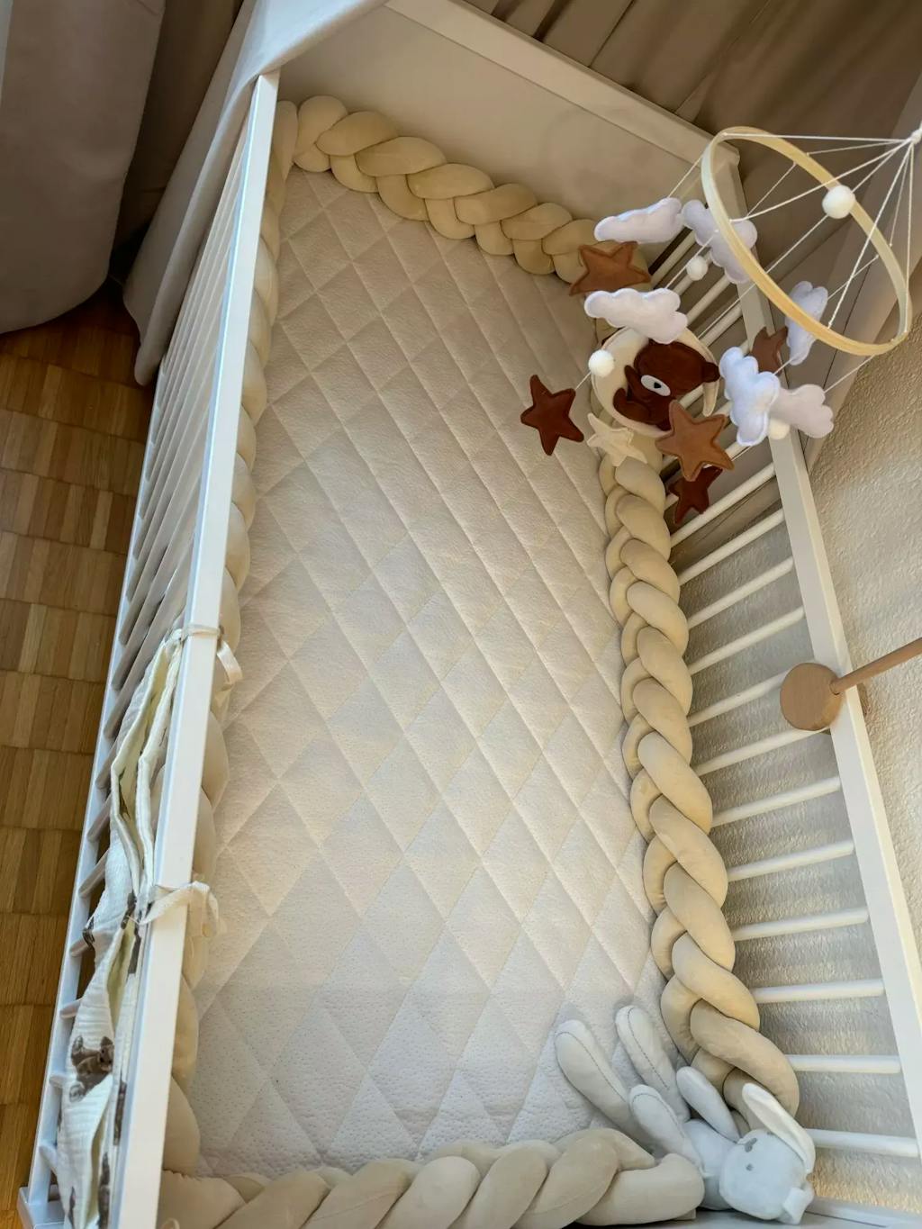 Amy J. Looks exactly as it did in the pictures. The sizing was perfect. I chose the larger size (400cm) so it fits all the way around the cot. It works great and makes the cot look very appealing.